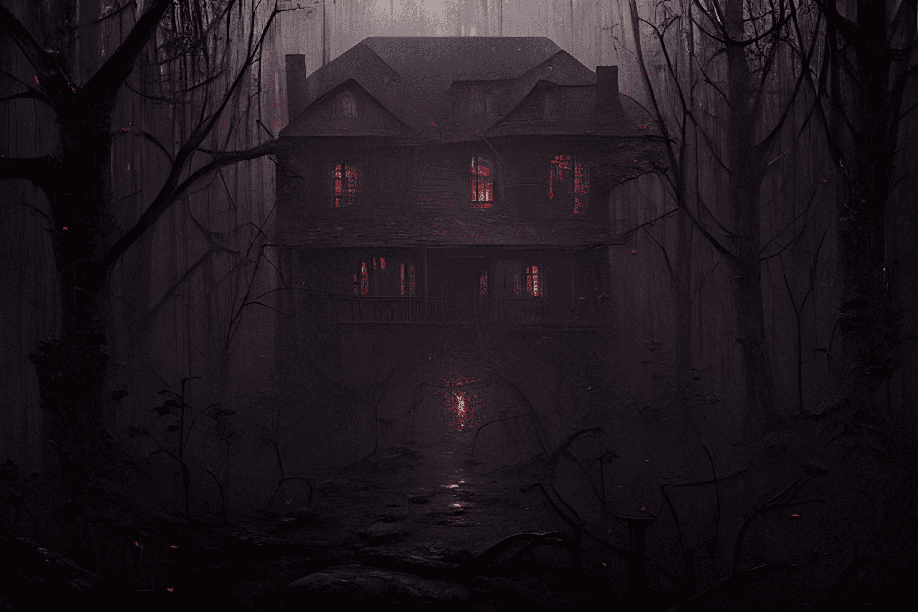 Na wygenerowanym zdjęciu widać, że pomiędzy kamerą a domem nie ma pustej przestrzeni – są za to pnie, gałęzie i różnego rodzaju elementy wypełniające, które nadają scenie dodatkowego realizmu.
