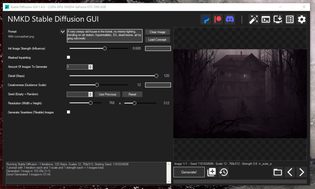 Zdecydowałem się na wykorzystanie nowoczesnej technologii generowania obrazów przez sztuczną inteligencję. Zaimportowałem wyżej wspomniane zdjęcie do programu Stable diffusion GUI, wprowadziłem kilka popularnych promptów, a następnie przesunąłem kilka suwaków zgodnie z poradnikiem na YouTube.
